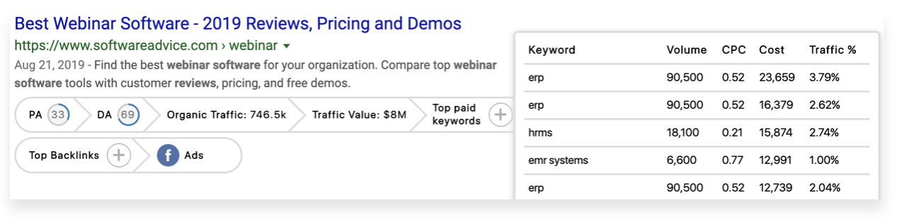 GrowthBar is a Google Chrome plugin that lives in the search engine results page (SERP), so you can gain competitive insights for every website and keyword on Earth, while you Google search normally.